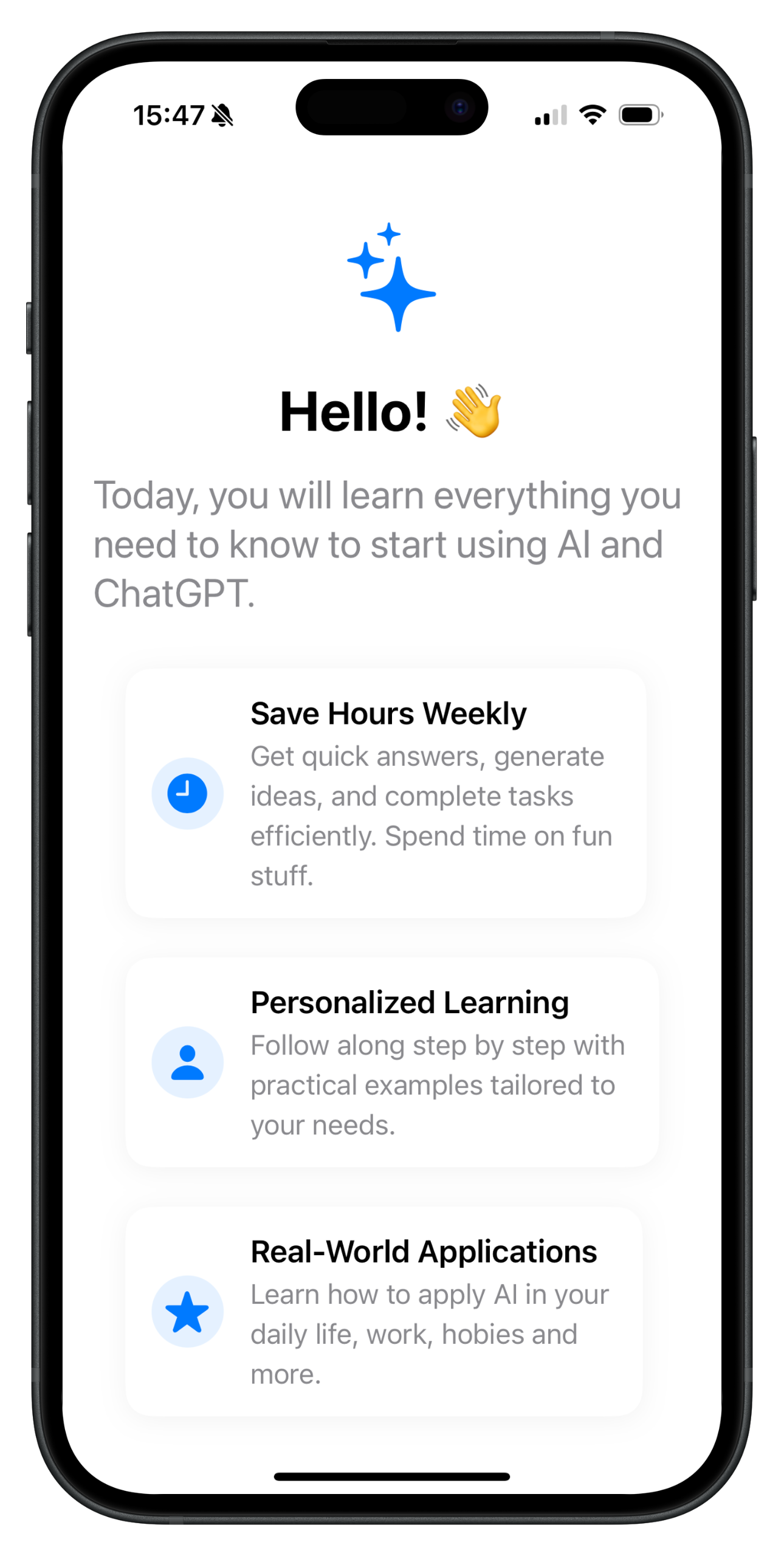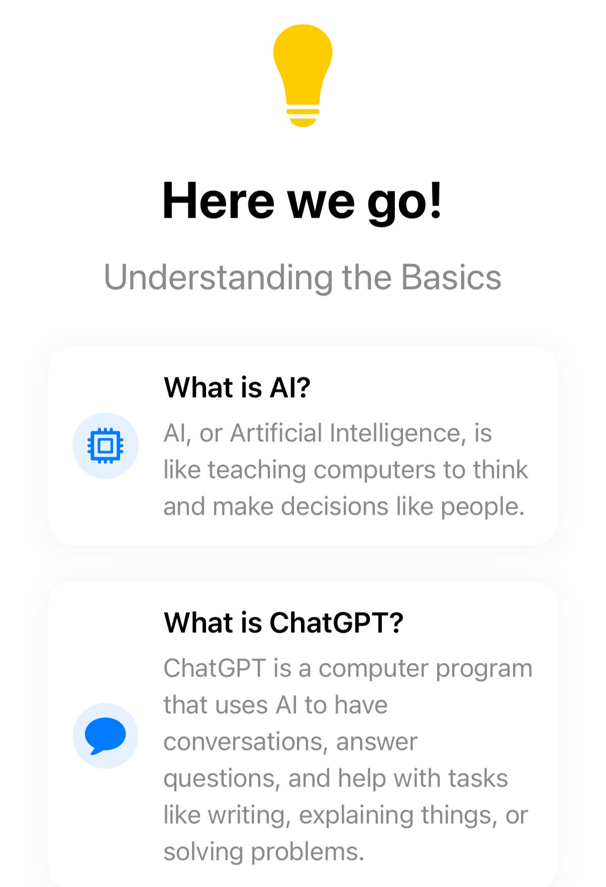 Start using the most helpful technology ever, step by step, with the Learn AI app.